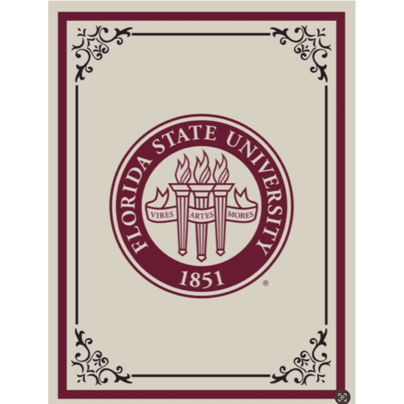 Celebrate your Seminoles pride with this officially licensed Florida State University Afghan Blanket. Crafted in the USA, it features the university seal beautifully adorned with garnet and gold threading on natural canvas, making it a standout addition to any space. Measuring 48" x 68", this cozy blanket is perfect for showing your allegiance while staying warm and stylish.