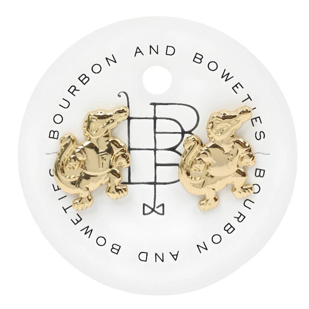 Show your Gators spirit with unmistakable style using these Gold Albert Earrings. Crafted with a bold all-gold team logo, they're the perfect accessory to transform your game day look from ordinary to extraordinary. Whether you're cheering in the stands or celebrating around town, these earrings deliver the polished sophistication that lets your Florida pride shine through with confidence.