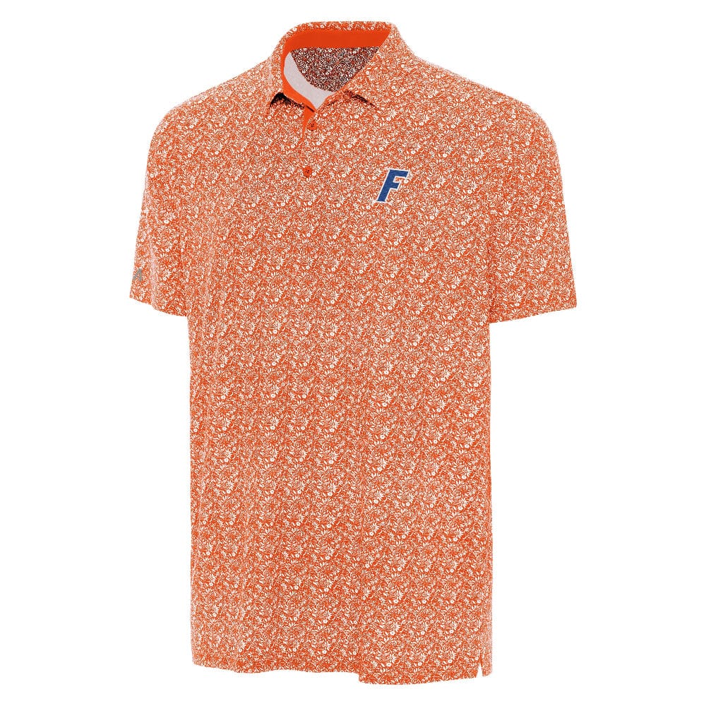 The Florida Gators Athletic F Logo Lainthus Polo features a subtle all-over print in team orange with an embroidered royal blue vault logo. Designed with unmistakable Gators pride, this performance polo is perfect for showing your team spirit on game day, the golf course, or wherever you represent Gator Nation. Go Gators!