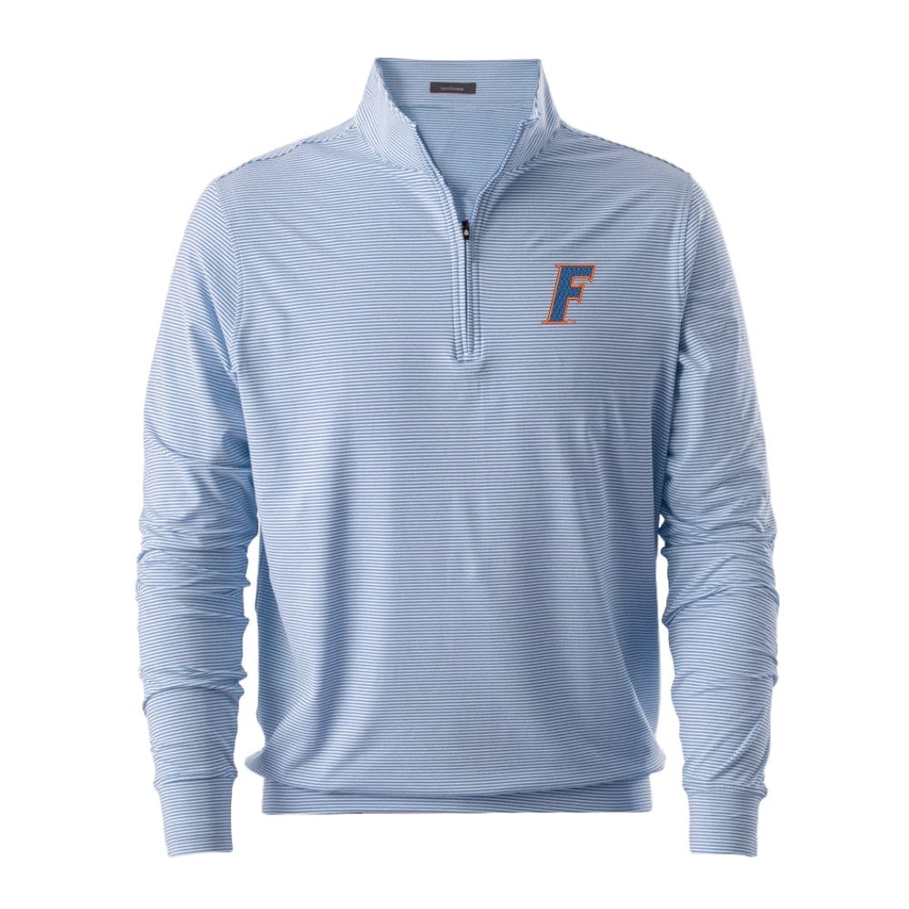 The Florida Gators Turtleson Carter Striped 1/4 Zip Pullover is perfect for crisp Gainesville mornings, SEC Saturdays, and everything in between. Made with soft performance fabric and a classic fit, it offers all-day comfort whether you're tailgating or on the golf course. Lightweight and breathable with an ultra-soft brushed interior, it features an embroidered University of Florida logo for a striking Gator look. The mock neck and tonal zipper add a polished touch, making this pullover a versatile choice for any Gator fan’s wardrobe.