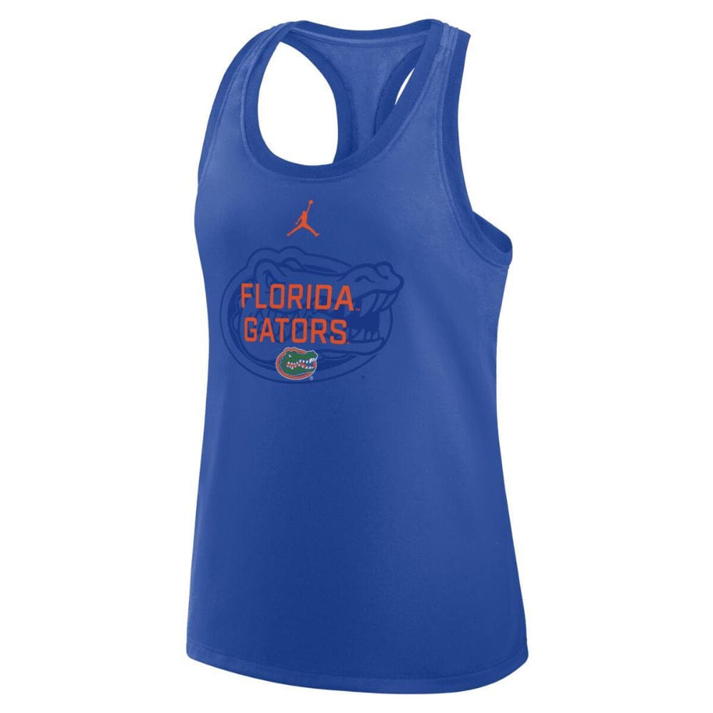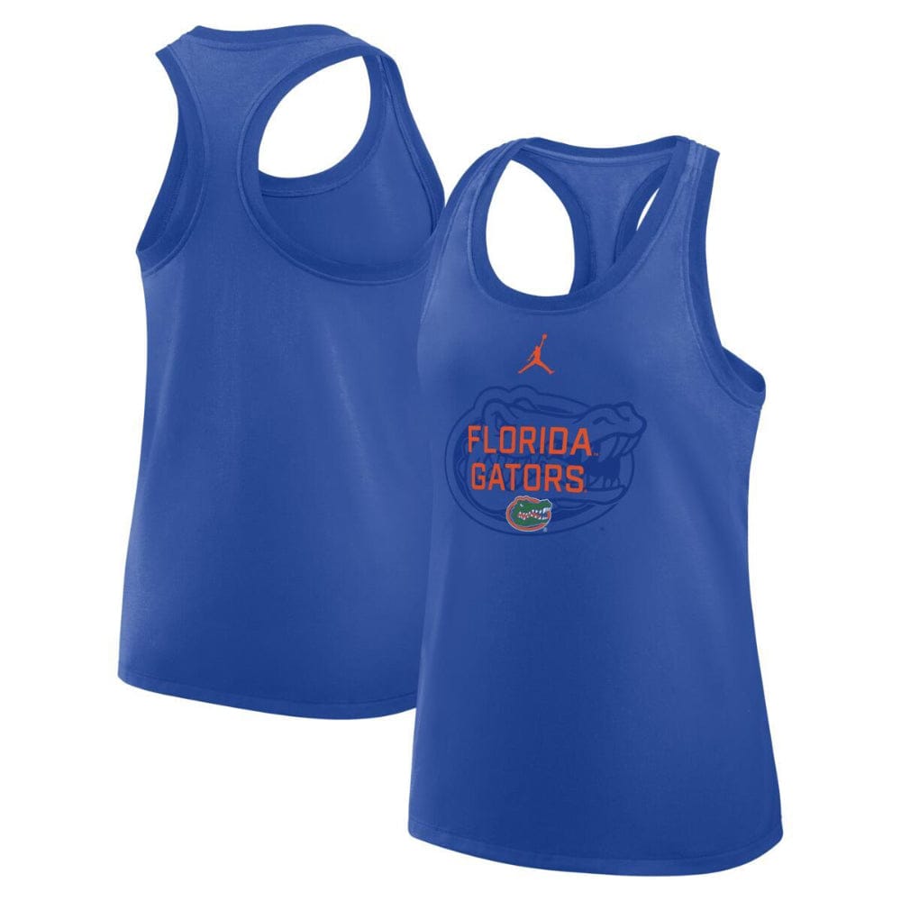 Show your Florida Gators pride with the Women's Jordan Team Logo Racerback Tank. Designed with a comfortable tri-blend fabric and a stylish curved hem, this tank features distressed college vault graphics that capture the spirit of the University of Florida. Perfect for game day or casual wear, it keeps you cool and confident while cheering on your team. Go Gators! See more Women's Gator Tank Tops.