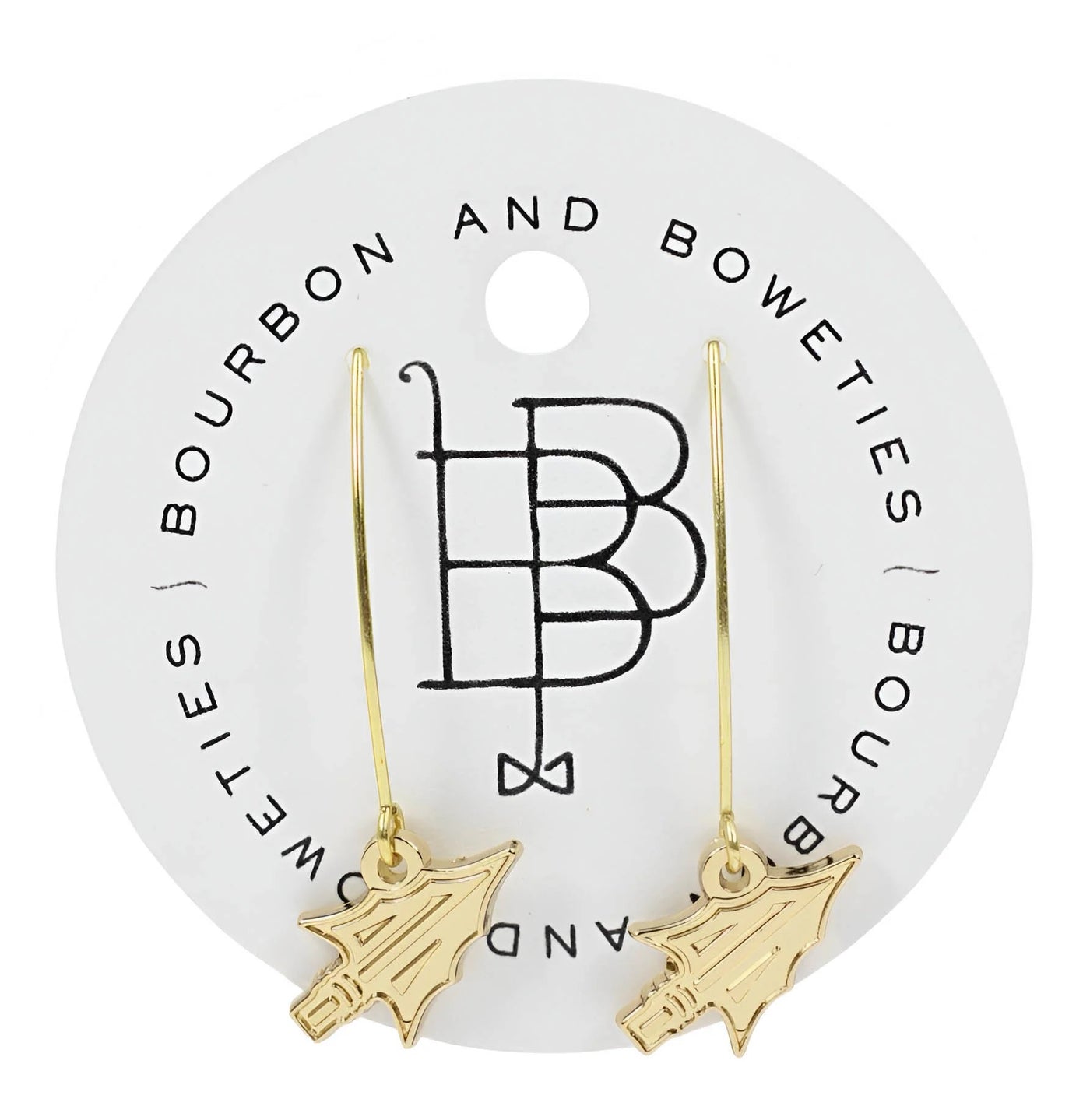 Showcase your FSU allegiance with these captivating spear stud hoop earrings, where timeless design meets team spirit. The gleaming gold finish and prominent Seminoles emblem create an eye-catching accessory that transitions seamlessly from tailgate to office. Whether you're cheering at the stadium or making a statement in your everyday look, these earrings deliver the perfect balance of bold collegiate pride and refined sophistication. A must-have for any devoted Noles fan.