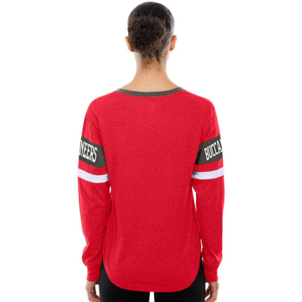 Step out with confidence in the Tampa Bay Buccaneers Women's Lace Up V-Neck Longsleeve Tee. This stylish shirt features a notched neckline and long sleeves, highlighted by the official team name and logo. Made from premium fabric, it ensures a comfortable fit and lasting durability. Ideal for fans who want to showcase their team spirit with a fashionable edge, this tee is perfect for any occasion.