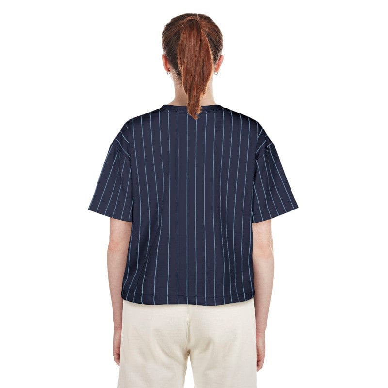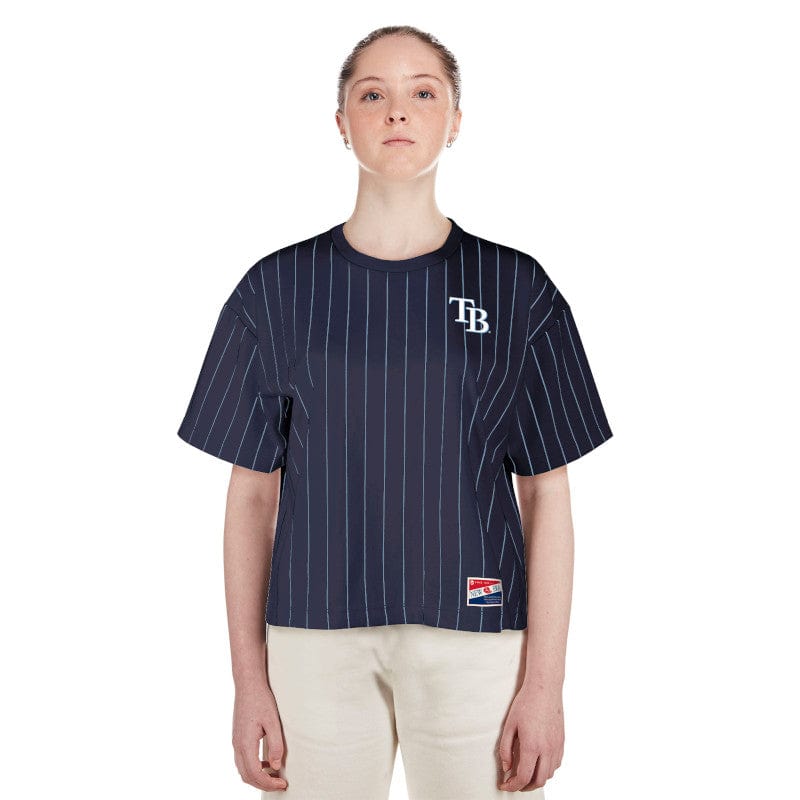 This Tampa Bay Rays Women's TB Cap Logo Pinstripe Boxy Crop Tee is the perfect choice for game day. With its trendy, boxy crop design and bold throwback stripes, it's sure to make a statement. Made for ladies, this top is a stylish and comfortable option for any fan. Go Rays!