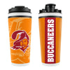 Stay cool and hydrated with the Tampa Bay Buccaneers Creamsicle 4D Stainless Steel Ice Shaker. This stainless steel shaker can hold 26oz of liquid and keeps it cold for up to 30 hours. Its convenient carry hand lid and standard size cup holder compatibility make it perfect for on-the-go use. Invented and sold by former NFL brothers, Chris and Rob Gronkowski, this Bucco Bruce ice shaker will keep you hydrated for hours to come. Go Bucs!