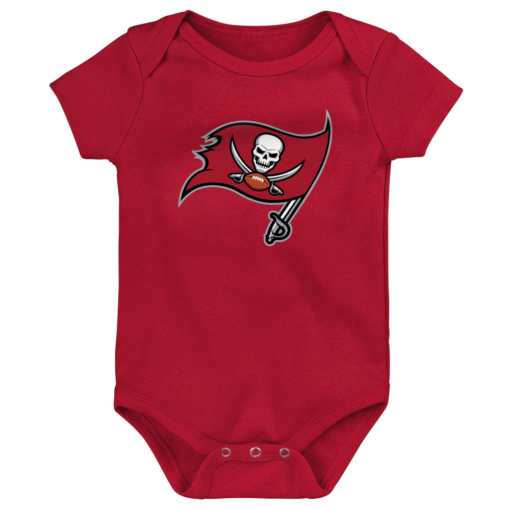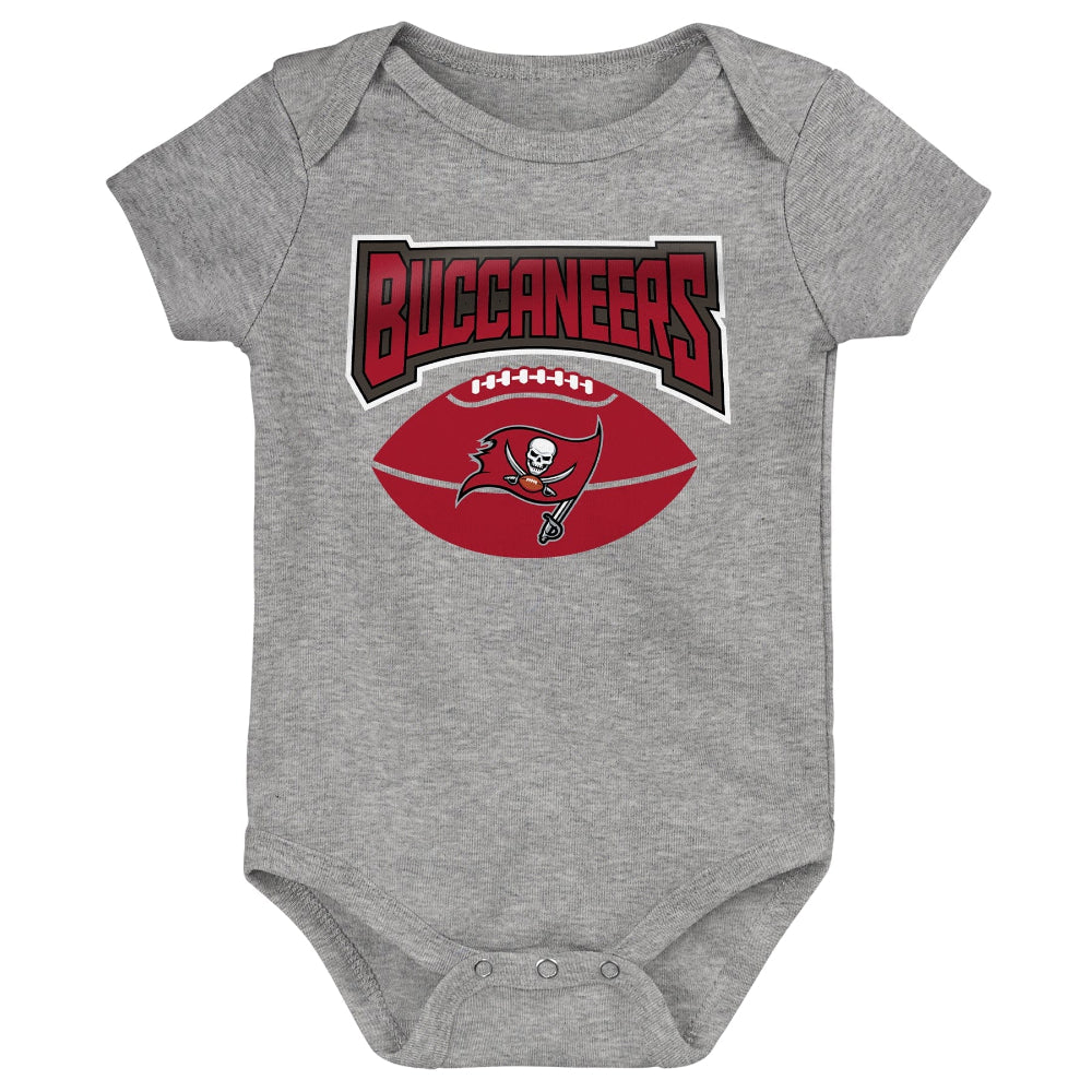 Keep your little Buccaneers fan geared up for the season with these Game On bodysuits. This Tampa Bay Infant Game 3 Pack Creeper Set features authentic Buccaneers graphics printed on comfy fabric. The lap shoulder neckline and snaps also help make dressing easier and faster.